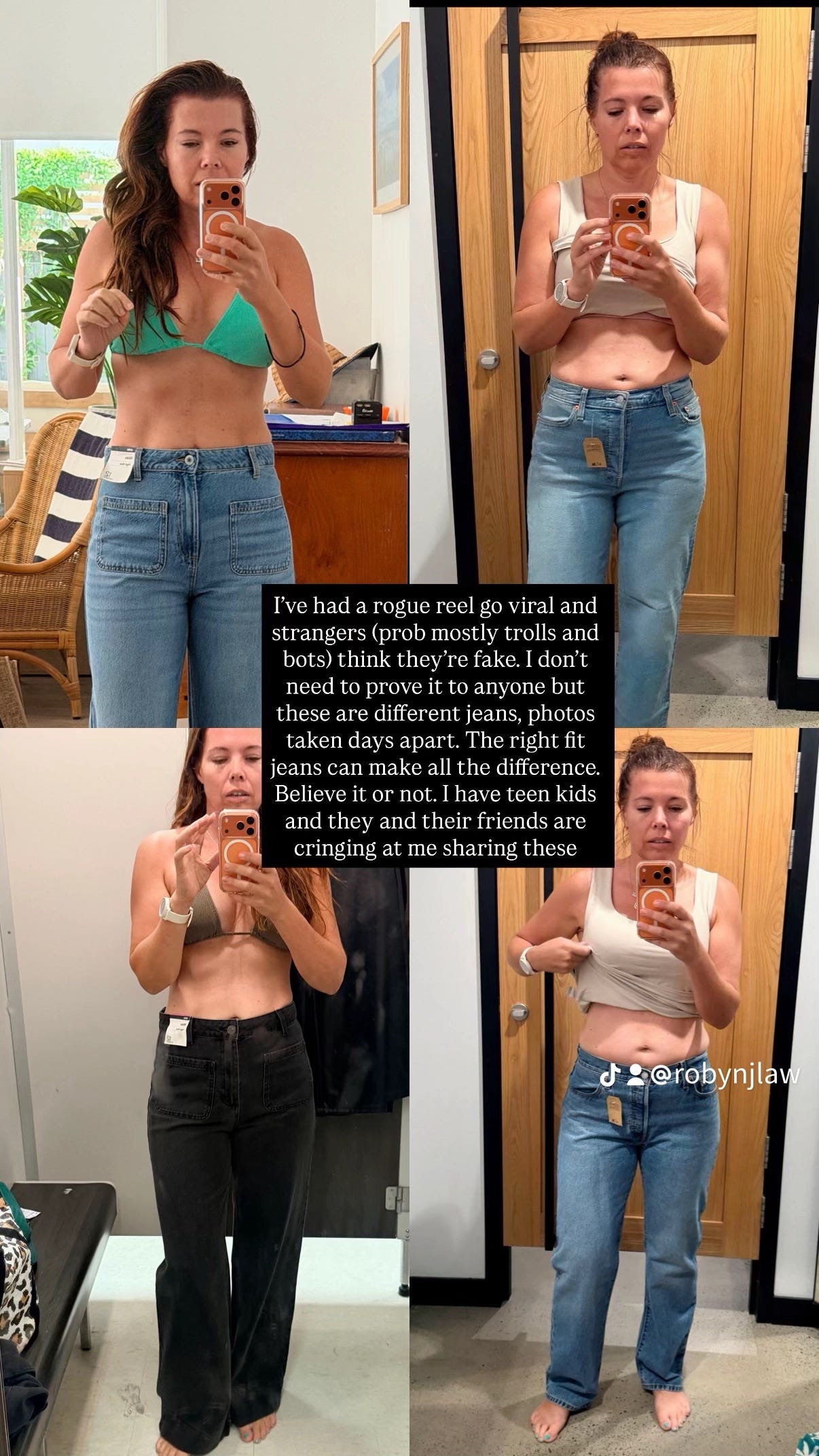 The jeans post drew a wave of naysayers convinced I was lying. And honestly? At first, I felt defensive. Who are these strangers on the internet to tell me that isn’t my body?